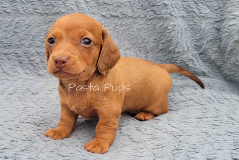 Ready May 9th! His parents are Chelli and Tag. He is a smooth coat red dapple and the smallest in the litter.