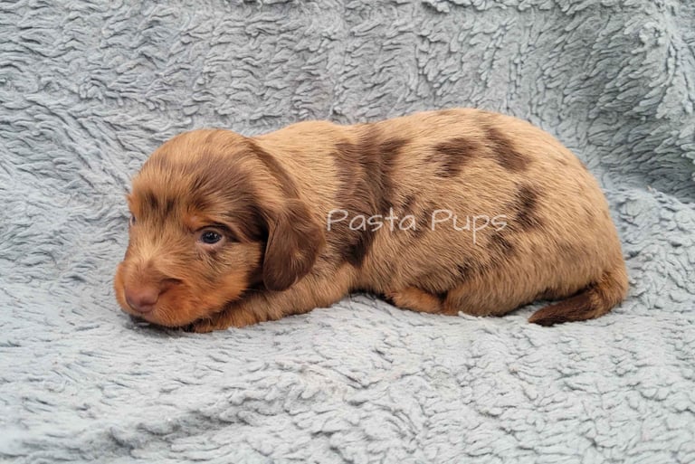 Ready May 19th! His parents are Pici and Tag. He is a longhair chocolate dapple.